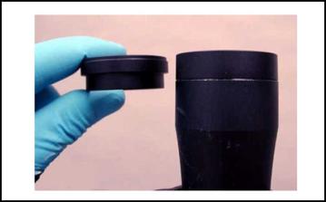 geperst wordt in het frame. Het smalle gedeelte van de cup valt in