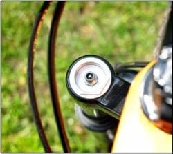 Een handige truc om na elke rit je daadwerkelijk gebruikte veerweg te controleren, is het plaatsen van een tie-wrap strak om de demper. Hiermee voorkom je dat de demper vanzelf kan bewegen. Voordat je opstapt, schuif je de tie-wrap naar boven en in één oogopslag kun je zien of alles naar behoren werkt. Deze eenvoudige handeling biedt gemoedsrust en zorgt ervoor dat je snel kunt controleren of je demper optimaal functioneert.