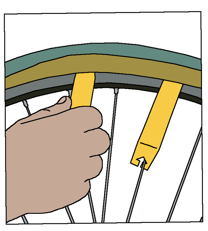 Ga hiermee door, tot je de band met je vingers compleet uit de velg kunt werken.