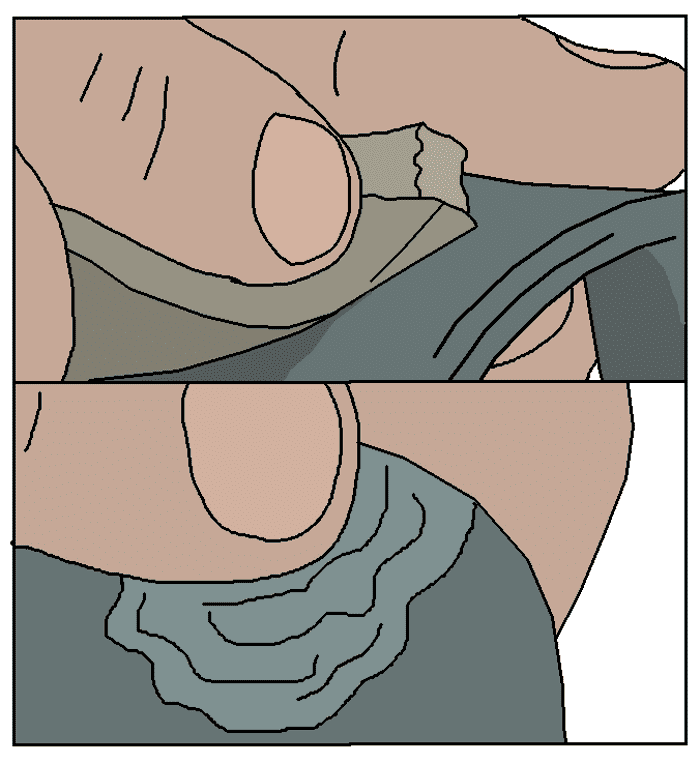 Als je geen schuurpapier bij je hebt en je moet onderweg een lekke band plakken, dan kun je het oppervlak ook opruwen door het voorzichtig langs een steen te halen.
