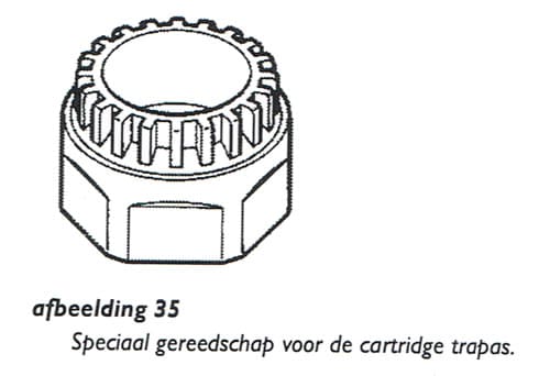 De demontage en montage van de cartridge trapas verloopt als volgt: