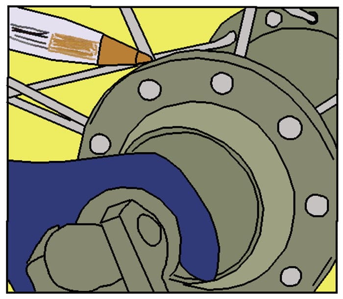 Laat je wielen draaien en bekijk de afstand tussen je remblokken en je velg, een zij of hoogteslag in je wiel van meer dan 2 millimeter is voelbaar op snelheid. Verbogen of losse spaken zijn makkelijk op te merken, door er steeds een paar te pakken met je handen en de spanning te voelen.